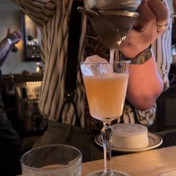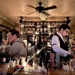 Came here to get a drink and it was super busy by the bar. The bar area is nicely dim. The menu has a cool assortment of drinks and focuses on absinthe based drinks. We got two different absinthe drinks which were solid, but not sure we'd get again. Would try the oysters though next time!