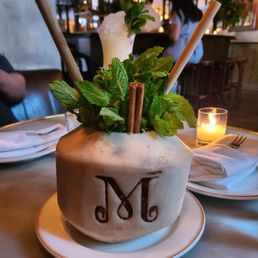 This place was really cool. We stopped in for a nightcap and the hostess let us know that seating was limited and we probably wouldn't be served before last call. We started to walk out but as we did, she followed after us and let us know a table just opened up! Perfect timing. The inside feels like you're in an oyster shack on the Louisiana bayou but the kind of oyster shack that also doubles as a speakeasy at night, if such a thing exists? The oyster shucking bar was super cool and outfitted with large ice baths. The drinks all seemed to be playing on a tiki theme or at least paying homage to the rum trade triangle. We had come from a day of eating and drinking and I couldn't possibly do a sugary type drink so I ordered a dirty martini. It was made perfectly. Others in my party ordered a piña colada which is served in a whole coconut with a shit ton of fresh garnish. We were all impressed. Would definitely return to check out more of the menu and actually eat some food the next time I'm in the area.